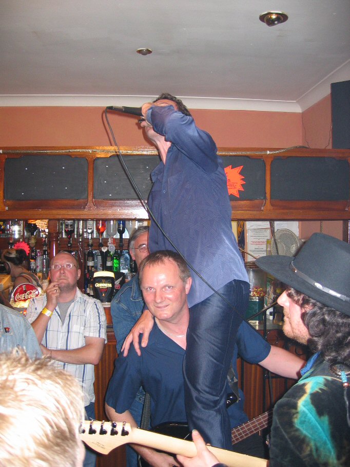 sweat pouring, often blood letting, shaking manic musical experience, with roots