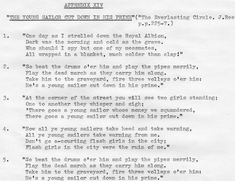 "The Young Sailor Cut Down In His Prime" ("The Everlasting Circle" J. Lee.)