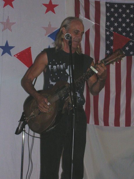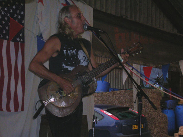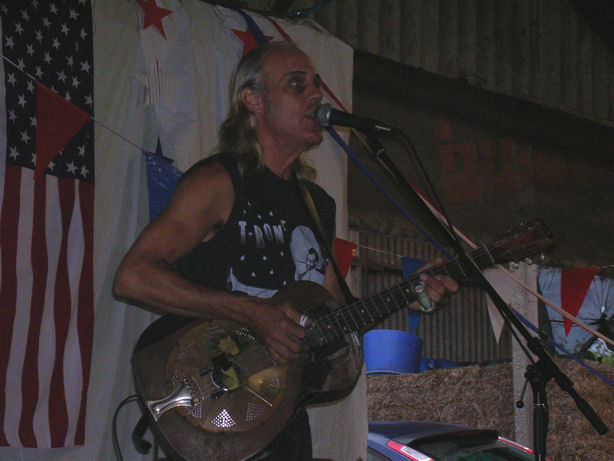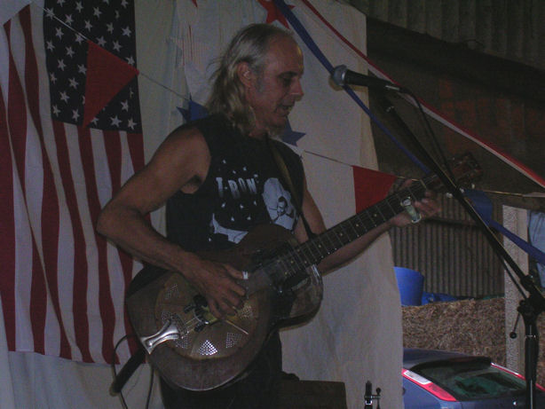Kent DuchaineBroome Farm, Peterstowe, Ross on Wye : 4th July 2007 A quick furtive glance through this months Broad sheep magazine found an interesting advert needing further investigation. It transpired that Kent Duchaine was in town, so off we went. The venue was indeed a barn, quite comfortable with a bar and BBQ. Around 150 people turned up for this gig and only £5 to get in. Mike our host explained how he saw Kent at the Miners Arms in the Forest of Dean and was able to book him for this gig on his current tour of the UK. Proceedings got under way with a band with no name – honest apparently these four youngsters had got together for only the fourth time and as yet had no name! What was really remarkable was their music, what a warm up band! The highlight was a rendition of Otis Rush’s All your Love but a version in the style of John Mayall’s Bluesbreakers. These youngsters are good enough and should get out more often. Kent opened with Sweet Home Chicago which everyone warmed to. And so the stories started, tales of Bukka White, the house the Brits bought, the first and second wives, his son – Miles, potential third and fourth wives and so on all interspersed with some wonderful music. An enthusiastic audience barked and howled through Little Red Rooster and then we were introduced to Leadbessie his beat up 1934 National steel guitar. More stories ensued and then we were into Willie Dixon’s Seventh Son. A cover of Fever and even Percy Sledge's When A Man Loves A Woman. The second set got off with Shake Your Money Maker and then the Johnny Shines story. Rock Island Line followed and a superb version of Walk On. The evergreen Summertime, Robert Johnson covers and wow it was all over. An encore of When The Saints Go Marching In and it really was all over. There’s another event in September and if possible I’ll be there. Steve Wosket